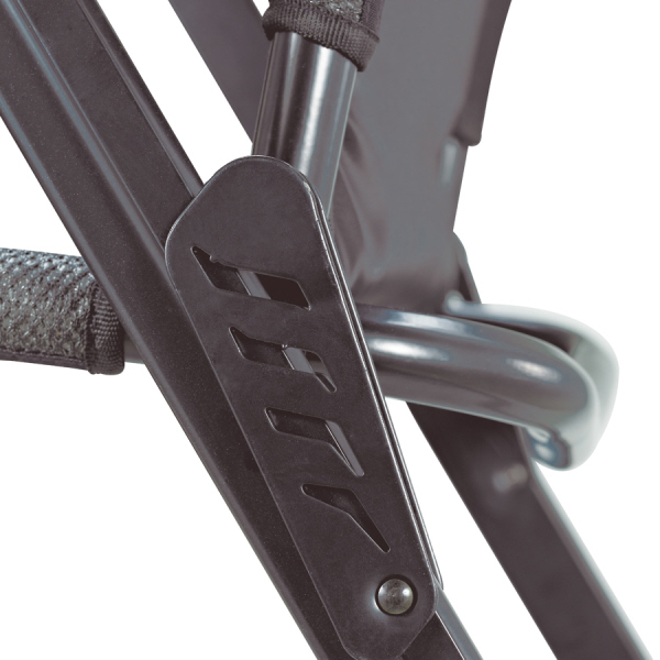 Der Sitzbezug besteht aus ultraweichem DuraDore 3D Mesh mit 0,8 cm elastischer Zwischenschicht und garantiert höchsten Sitzkomfort. Zusätzlichen Komfort bietet die um 3,5 cm verlängerte Sitzfläche mit der einzigartigen Ergoshell-Sitztechnologie. Ein Kopfkissen ist in der Rückenlehne enthalten. Der Rahmen besteht aus ultraleichtem DuraLite-Material und wird mit unserer bekannten SpaceBox-Technologie hergestellt, die Klappscharniere sind aus Aluminium gefertigt.