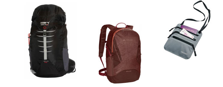 Komfortable, leichte Rücksäcke mit praktischen Trinksystemvorrichtungen oder Seitentaschen für Trink- und Thermoflaschen sind die perfekten Begleiter für weite Wanderwege. Mit den verstellbaren Gurten an der Vorderseite können z. B. Schlafsäcke und Isomatten oder auch Picknickdecken für kleine Pausen und Zwischenstopps befestigt werden.
