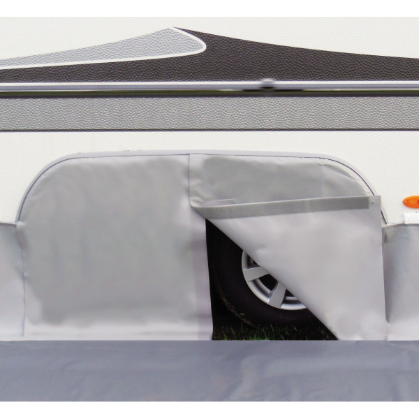 - Stellen Sie sicher, dass der Wohnwagen sauber und trocken ist, bevor Sie die Schutzhülle anbringen.