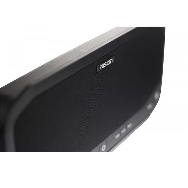 Ein AUX Ausgang kann zur Integration eines zweiten Systems verwendet werden. Die Bedienung erfolgt am Gerät selbst, die FUSION Link Smartphone App oder kompatible GARMIN Smartwatches.