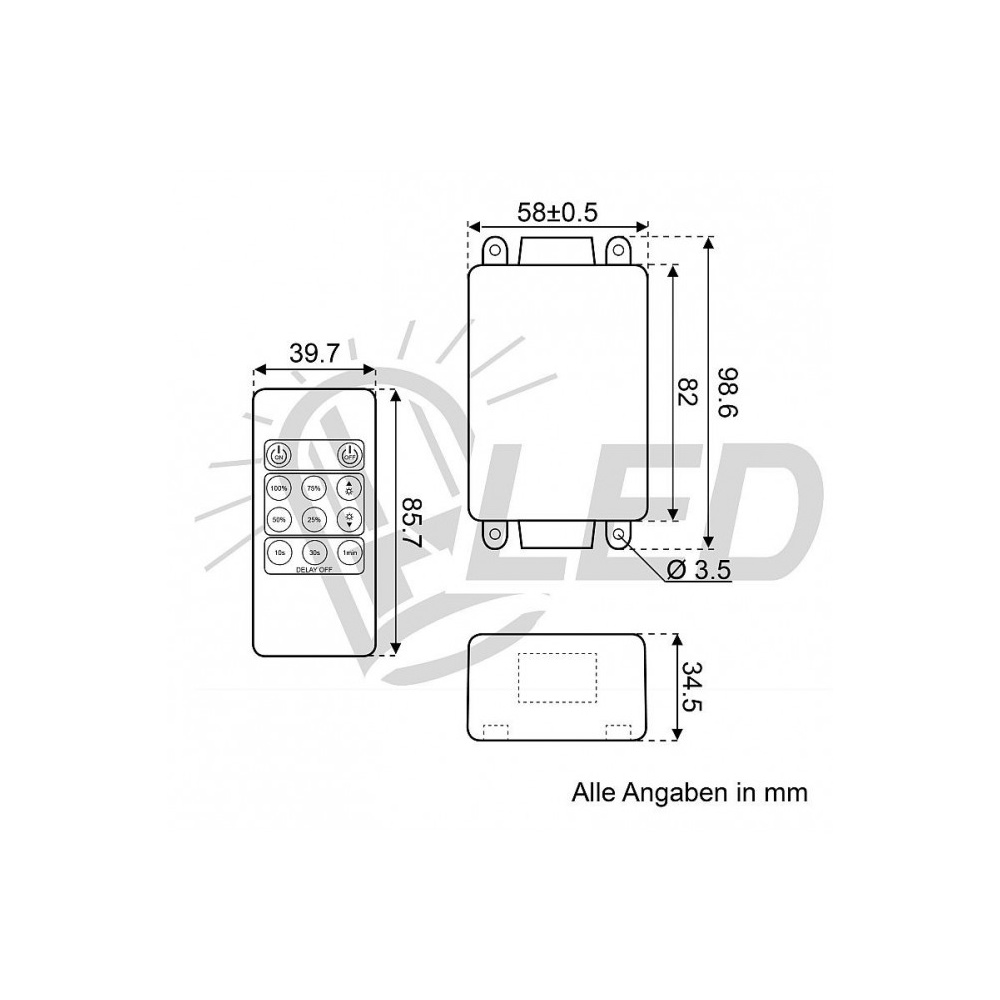 Der Funkdimmer 12-24V ist ein Controller zur stufenlosen Regelung der Helligkeit.