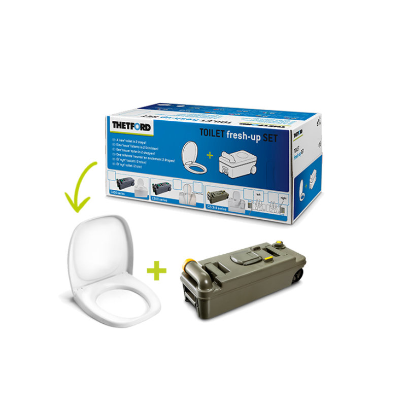 Das Toiletten-Aufbereitungsset ist eine einfache und preiswerte Möglichkeit, eine gebrauchte Cassettentoilette rundzuerneuern. Das Set umfasst einen Fäkalientank mit Toilettensitz und Deckel. Zusätzlicher Fäkalientank für längere Reisen? Selbst dann ist das Toiletten-Aufbereitungsset eine perfekte Lösung.