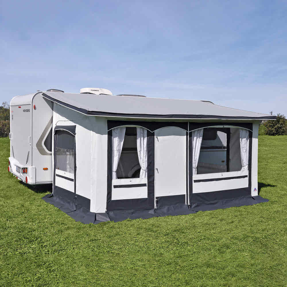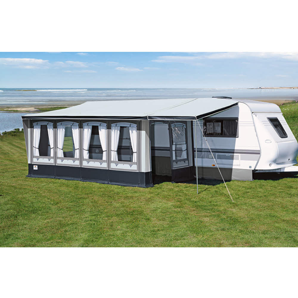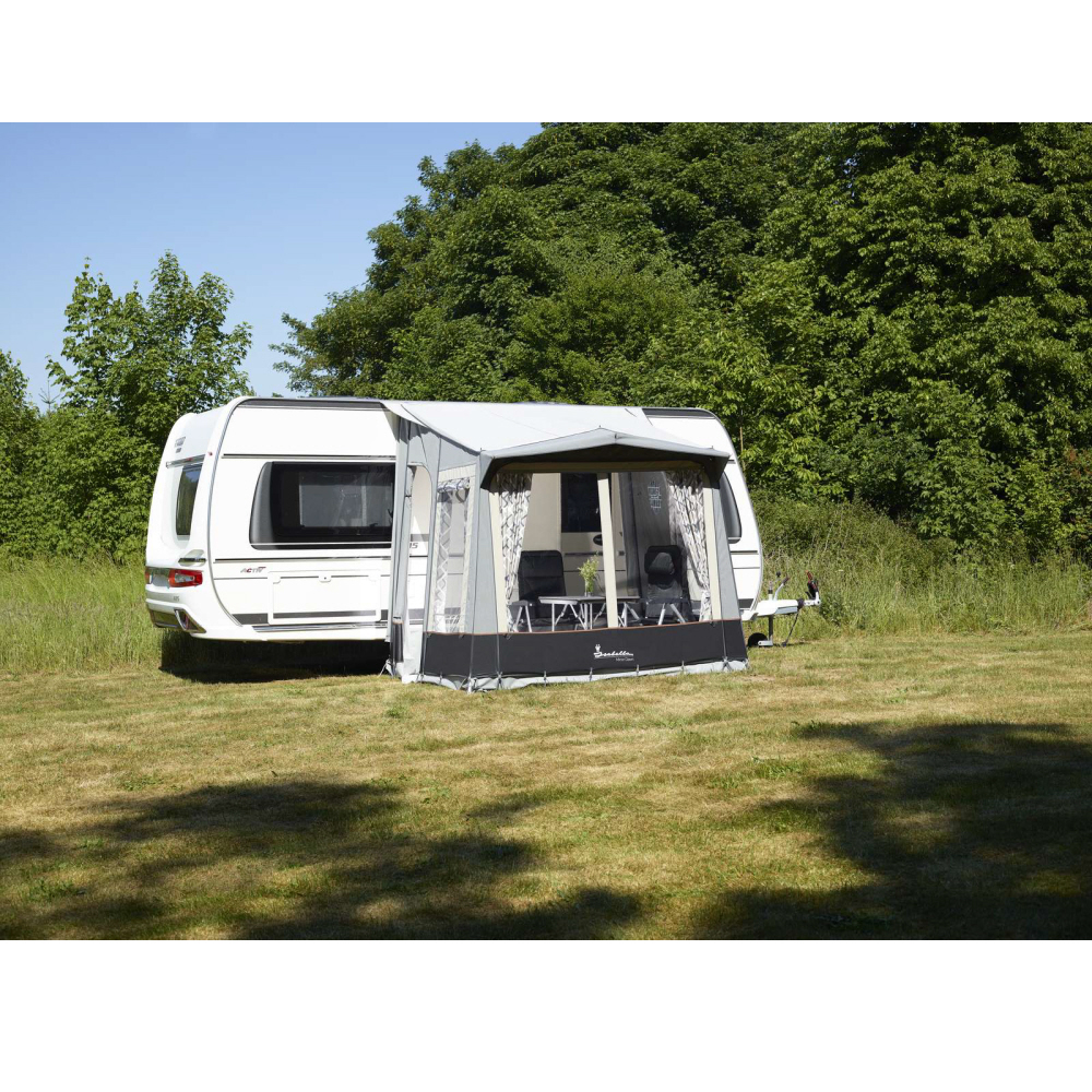 Ein teilweise in die Kederschiene eingezogenes Vorzelt ist normalerweise nur mit dem Wohnwagendach verbunden. Mit Polster und Andruckstangen werden die Seitenteile an die Wohnwagen-Seitenwand gepresst, sodass eine gute seitliche Abdichtung möglich ist. Teilzelte eignen sich aufgrund des schnellen Aufbaus perfekt für Kurzurlaube. Auch für Wintercamping sind Winter-Teilzelte dank der geringen Zelttiefe und der steileren Dachschräge ideal geeignet, denn so kann der Schnee bei tauendem Wetter einfach hinabgleiten.