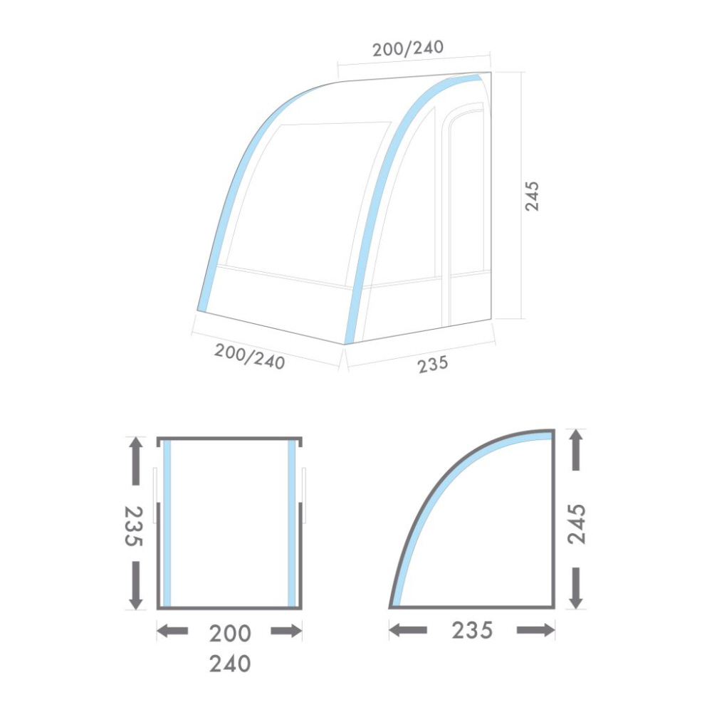 Das Leichtgewicht Lynx ist ein Teilzelt mit Schnell-Aufbau Airstube-System. Es ist speziell für den Eingangsbereich ihres Wohnwagens entwickelt worden. In nur wenigen Minuten aufgestellt bietet es einen praktischen Wetterschutz und viele Nutzungsmöglichkeiten. Alle Fensterflächen können blickdicht verschlossen werden, um noch mehr Privatsphäre zu erhalten.