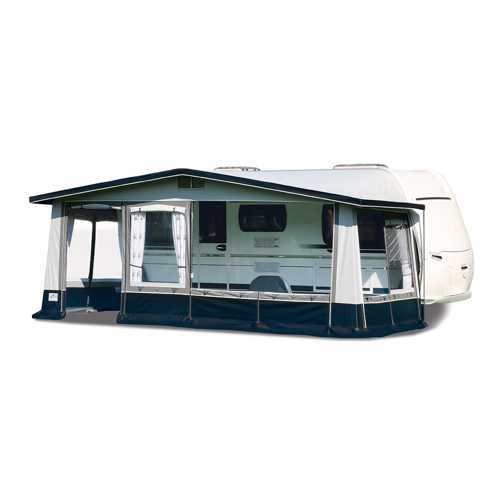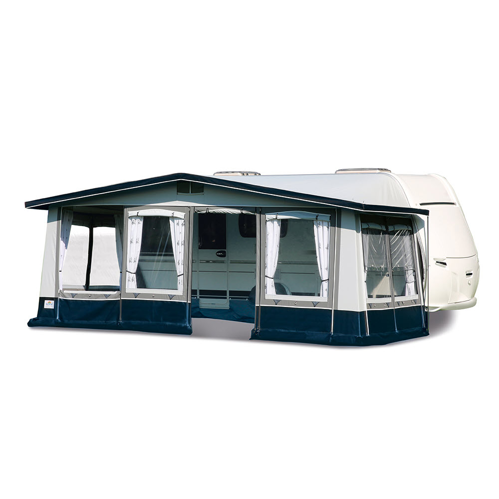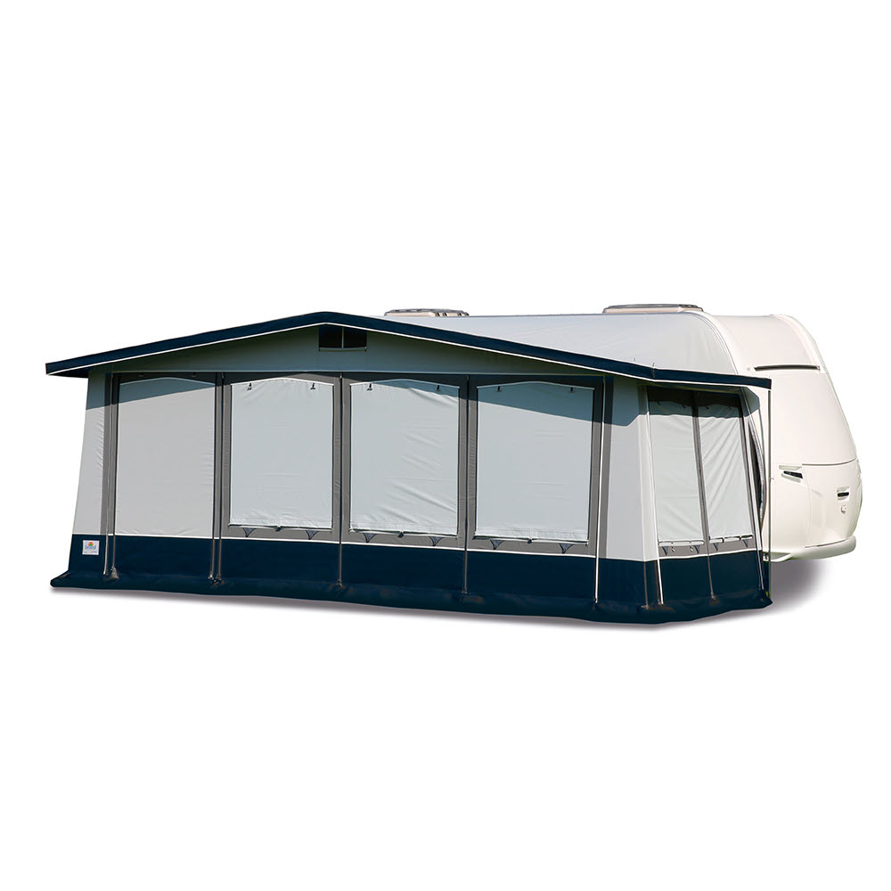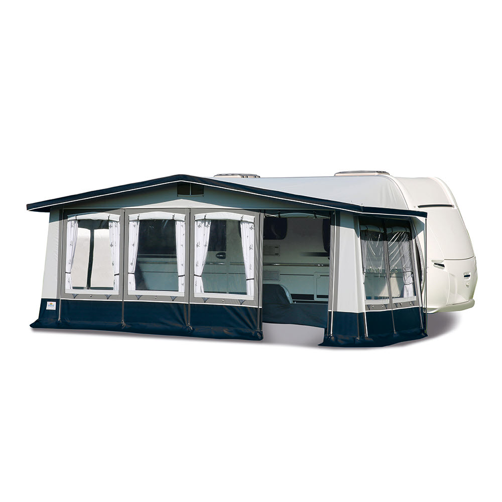 Auf Wohnqualität müssen Sie im Urlaub nicht verzichten. Unser Vorzeltklassiker Castello mit umlaufendem, gestängeverstärktem Dachüberstand ist für Saison- und Dauercamping mit allen wichtigen Ausstattungsdetails ausgerüstet. Für das Dach kommt ein robustes PVC-Material zum Einsatz. Die durch den Dachüberstand geschützten Wände werden aus atmungsaktivem Ten Cate- Gewebe gefertigt. Die Elementtechnik in Vorder- und Seitenwand ist wie bei unserem Modell PALAZZO gestaltet. Fensterklappen, Wetterschutzabdeckung der Reißverschlüsse, eine verschließbare Hochentlüftung und ein 28mm Stahlrohrgestänge mit PowerGrip und Vordachverstärkung komplettieren die umfangreiche Serienausstattung.