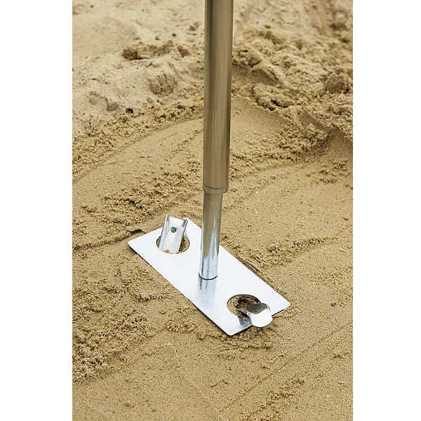 Zubehör: Abspannleinen mit Bodenanker und Bodenplatten mit Eisenheringen