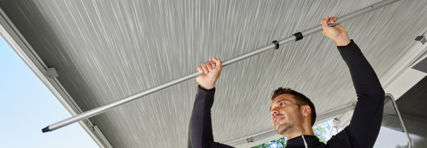 Ihre Markise können Sie individuell mit Seitenteile, Vorderteile oder einem Markisenzelt erweitern. Die Montage für die Seitenteile erfolgt mit passenden Spannstangen und die Vorderteile werden einfach in die Kederschiene der Frontblende eingezogen. Für zusätzliche Stabilität sorgen Abspanngurte, die fest mit dem Boden verankert werden und eine weitere Spannstange für die Mitte, die zwischen Frontblende und Gehäuse geklemmt wird. Mehr Zubehör finden Sie unter der jeweiligen Zubehör-Kategorie.