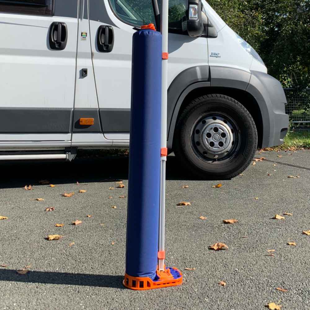 Peggy Tube ist die ideale Erweiterung der Fix&Go Ankerplatte zum Aufstellen der Markise auf Pflaster, Beton oder Asphalt. Mit dieser Systemerweiterung wird ein kompaktes und leichtes Transportvolumen zu einem 10 kg schwerem Zusatzgewicht. Anwendung: Den Adaptersteckschuh auf die vorhandene Fix&Go Ankerplatte am Markisenfuß stecken. Anschließend Schlauch mit 10 Liter Wasser aus Tank, See oder Fluss befüllen und in den Aufnahmekorb stellen. Peggy Tube mit den Klettbändern am Markisenbein befestigen - fertig! Mit insgesamt 20 kg Ballast (eine Peggy Tube pro Seite) lässt sich die Markise auch bei leichtem Wind verwenden. Achtung: Die Entscheidung wann der Wind für das vorhandene Gewicht zu stark wird, obliegt dem Benutzer. Peggy Tube ersetzt keine Markisenbefestigung!