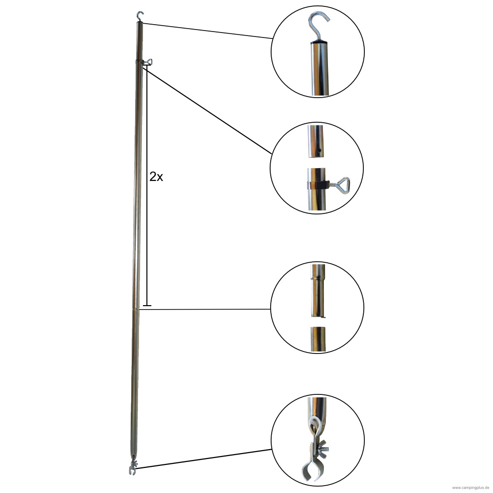 Alugestänge ist die Alternative mit Leichtgewicht und ideal für Reisecamper geeignet. Das leicht aufzubauende Gestänge ist in folgenden Stärken erhältlich: