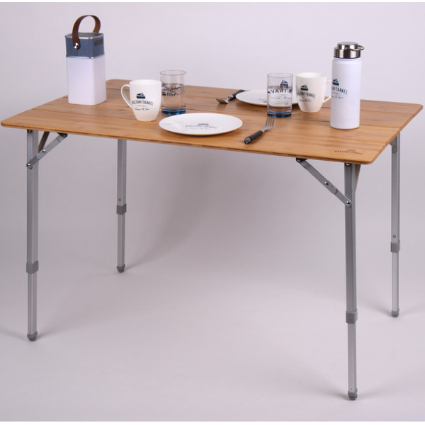 Ideal für Minicamper und Vans ist der Bambus-Tisch aus der exclusiven Holiday Travel-Serie aufgrund seines sehr kleinen Packmaßes. Der höhenverstellbare Tisch (42-65 cm) ist perfekt für 2-4 Personen und hat eine maximale Tragkraft von 30 kg.