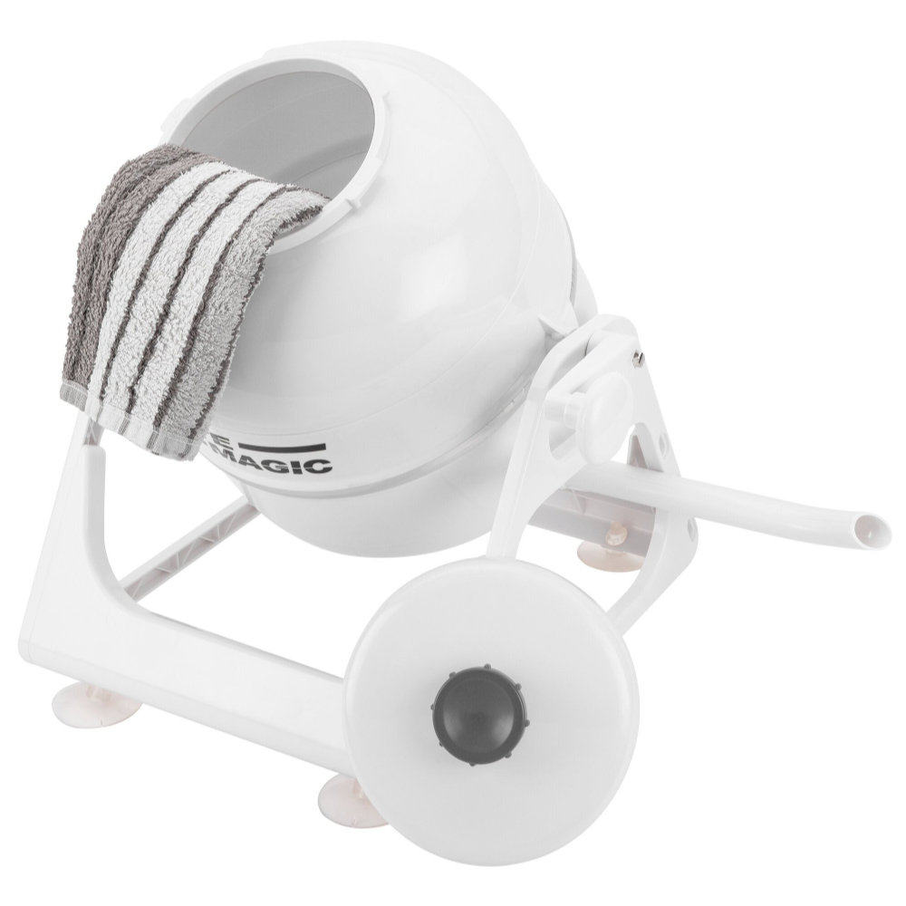 Die Handwaschmaschine White Magic ist die ideale Lösung für Camping, Wohnmobil, Boot und die Wäsche zwischendurch. Durch Muskelkraft und ganz ohne Strom kurbeln Sie Ihre Wäsche ganz leicht und ortsunabhängig rein. Die Wäsche wird in wenigen Minuten wieder sauber und frisch. Mit Hilfe eines einzigartigen Hochdrucksystems dringt das Waschpulver tief in die Faser ein, wodurch die Kleidung nicht nur einfach und kostensparend, sondern auch gründlich und in sehr kurzer Zeit gewaschen wird. Verbraucht viel weniger Wasser als Handwäsche. Wäschefüllmenge bis 2,2 kg.