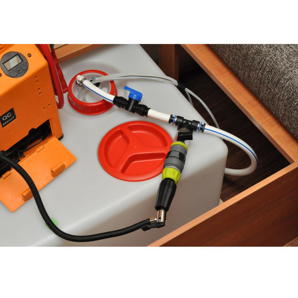 Floe ist ein einfach zu installierendes System, das Luft von einem Autokompressor oder einer Fußpumpe verwendet, um Ihnen die vollständige Entwässerung Ihres Wassersystems zu ermöglichen, sodass kein Wasser stagnieren und potenziell gefährliche Krankheiten verursachen kann. Durch die Entleerung im Winter werden auch Frostschäden verhindert. Ein einfacher Prozess, der eine längere Benutzung des Fahrzeuges während der Wintermonate ermöglicht.