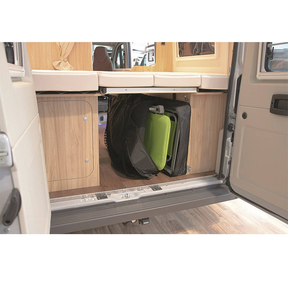 Mit diesem transportablen Stau- und Lagerraum sind Ihre Campingmöbel immer griffbereit und sicher in Ihrem Fahrzeug untergebracht. Die Tasche verfügt über 5 seitlich angebrachte Laschen mit lose beigelegten LOXX-Druckknöpfen, die der an der Seitenwand des Stauraumes befestigten Tasche einen sicheren Halt geben. Die Tasche muss hierbei auf dem Boden aufstehen und darf nicht schwebend montiert sein.