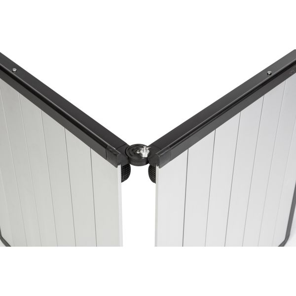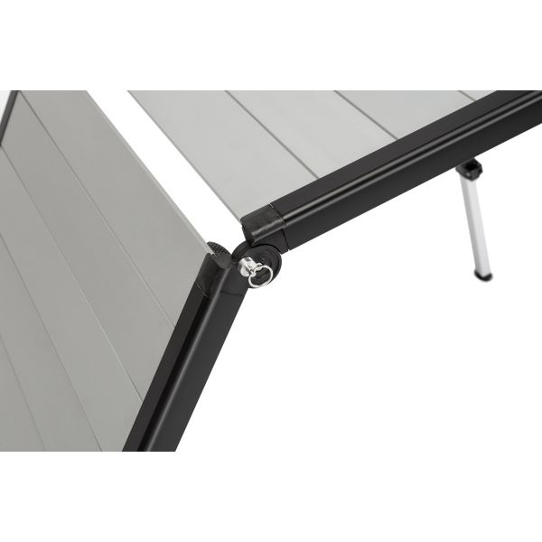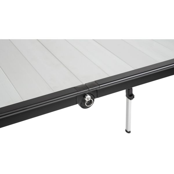 Der Dinemic 4 ist ein hochwertiger Outdoor- und Campingtisch mit einer speziellen Klappplatte aus besonders wetterfesten und verschleißfesten Aluminiumlamellen. Das pulverbeschichtete Metallgestell ist mit höhenverstellbaren Beinen ausgestattet. Zusammengeklappt lässt er sich sehr kompakt verstauen und ist daher ideal für Kleinbusse, Vans und Wohnmobile.