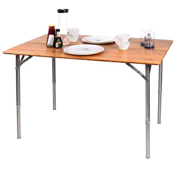 Ideal für Minicamper und Vans ist der Bambus-Tisch aus der exclusiven Holiday Travel-Serie aufgrund seines sehr kleinen Packmaßes. Der höhenverstellbare Tisch (42-65 cm) ist perfekt für 2-4 Personen und hat eine maximale Tragkraft von 30 kg.