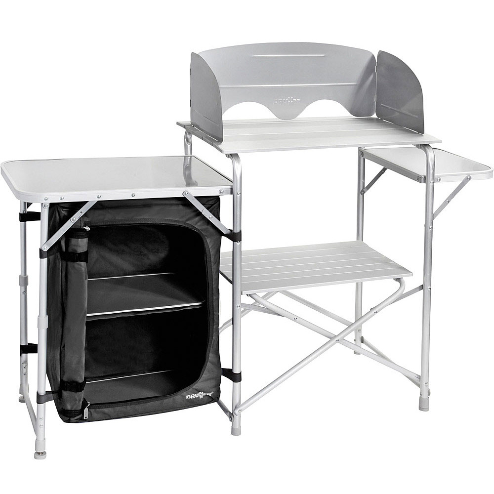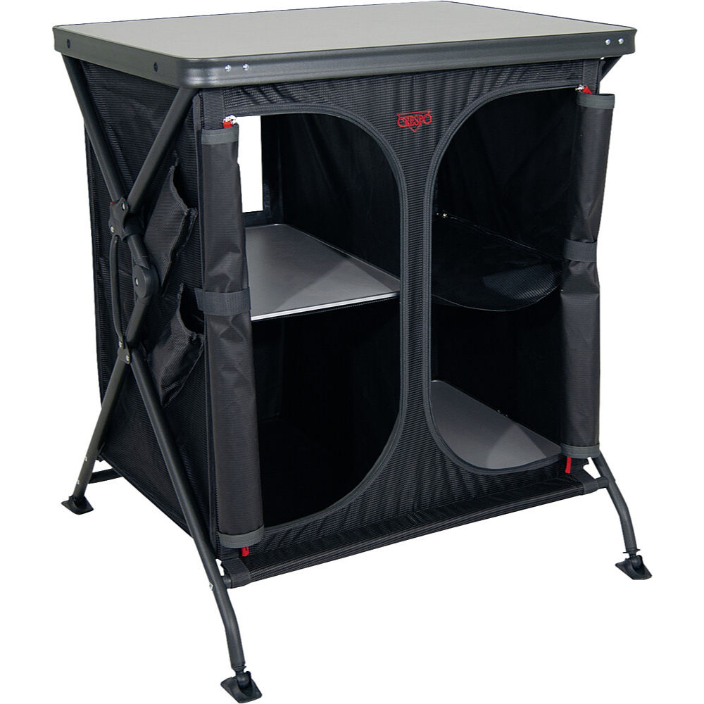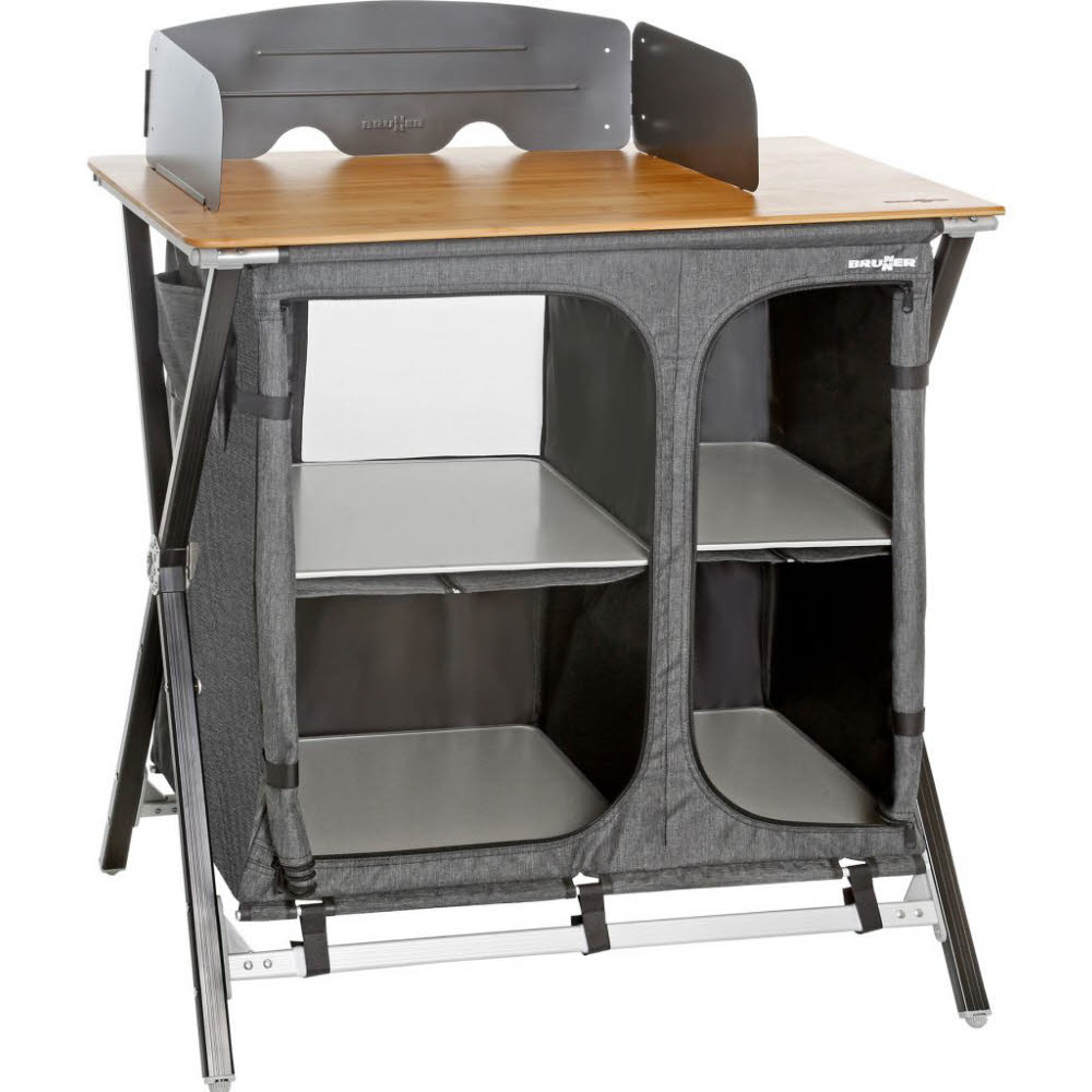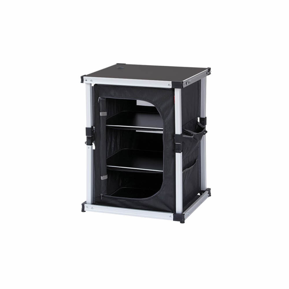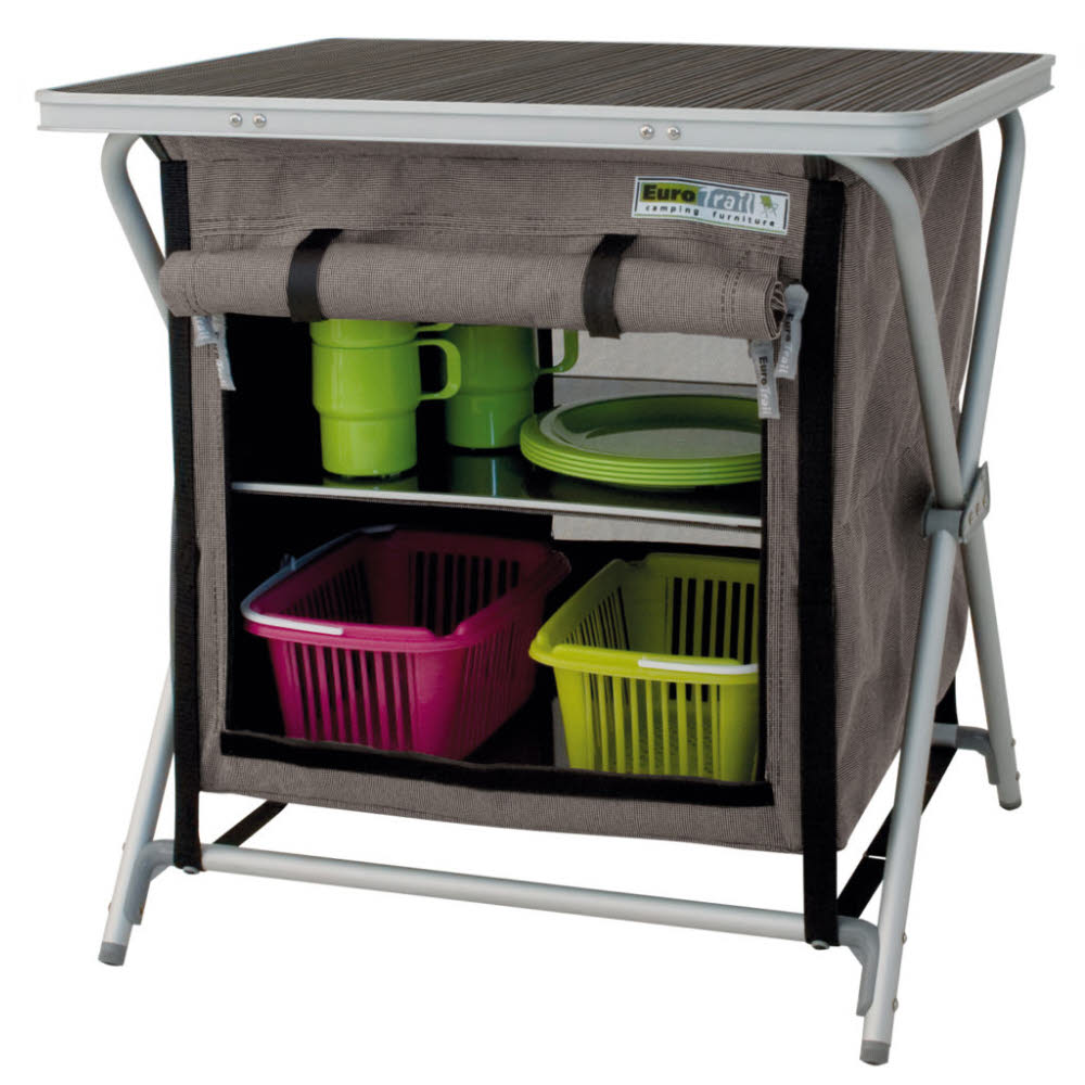 Unseren Erfahrungen nach sind klappbare Campingschränke am leichtesten und schnellsten auf- und abgebaut wie z. B. der Isabella Campingschrank.