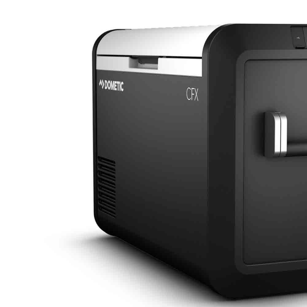Mit den Dometic Kühlboxen der Serie CFX3 wird ein neuer Maßstab im Bereich mobiles Kühlen und Gefrieren gesetzt. Jederzeit frische Lebensmittel und gut gekühlte Getränke - die marktführende VMSO3 Kühltechnik von Dometic macht es möglich. Herzstück der Boxen sind die drehzahlgeregelten Kompressoren mit einer optimierten Software für leistungsstarkes Kühlen und Tiefkühlen mit überlegener Energieeffizienz. Die Temperatur lässt sich nun am neugestalteten integrierten TFT-Bedienfeld oder per CFX-App vom Smartphone bzw. Tablet-PC über Bluetooth oder WLAN einstellen. Die CFX3 ist mit einem leichten und robusten Schutzrahmen ausgestattet, dieser macht sie ideal für den Outdoor-Einsatz. Stabile, gefederte Aluminiumgriffe machen das Heben und den Transport leichter.