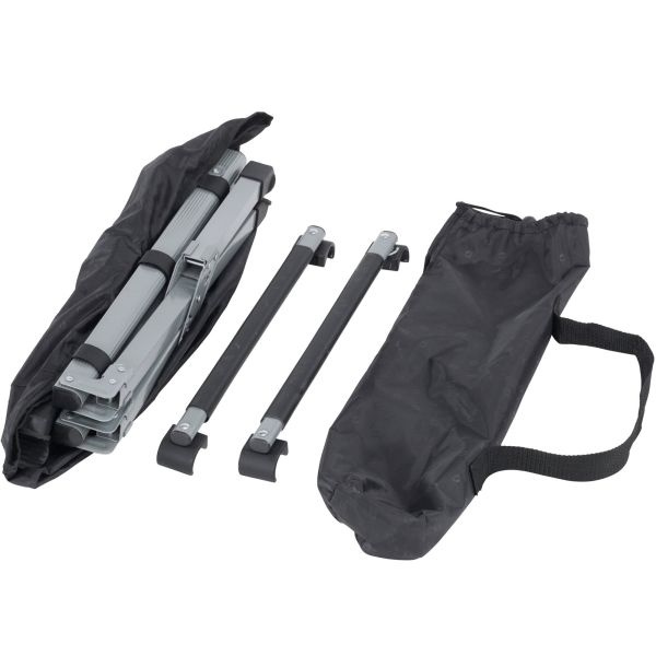 Auf diesem neuen Kühlbox-Ständer lassen sich Kühlboxen in bequemer Höhe abstellen. Er zeichnet sich durch einen stabilen Rahmen, rutschfeste und verstellbare Auflagen sowie einer abnehmbaren Aufbewahrungstasche aus. Die maximale Belastbarkeit beträgt 50 kg. Im Lieferumfang ist eine praktische Tragetasche enthalten.