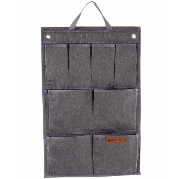 Wand-/Zeltorganizer mit drei Taschen. Inklusive 2 Ösen zur Befestigung.