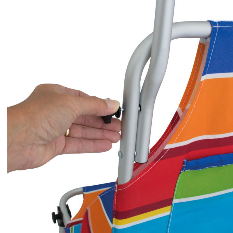 Der Beach Trailer mit farbenfrohem Bezug ist sowohl Transportmittel als auch ein bequemer Sitz mit einer Tragkraft von 80 kg. Seine luftgefüllten Räder verhindern Einsinken im Sand und ermöglichen dadurch einen bequemen und mühelosen Transport von allem, was man gerne an Strandutensilien mit sich führt. Wenn nicht benötigt, lässt sich das Gestell aus Aluminiumrohr klein zusammenlegen und verbraucht so wenig Stauraum.