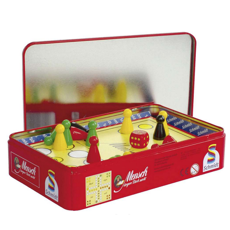Die praktische Reisespiel-Ausgabe MENSCH ÄRGER DICH NICHT in der Metalldose mit allem, was andere ärgert und einem selbst Freude macht.
