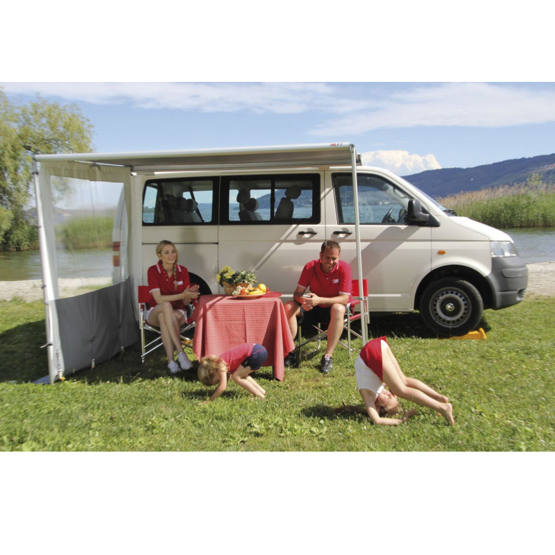 Die Fiamma F35 Pro ist die praktische, manuell zu betätigende Markise mit integrierten Stützfüßen in der Walze, welche dank der verschiedenen Halterungen an die Fahrzeugwand, Dachträger oder Schiene jeglicher Minivans angebracht werden kann. Durch die Doppelkederschiene ist es möglich zwei Frontteile oder Zubehör gleichzeitig einzuziehen. Gehäuse aus leichtem, stabilem Aluminium. Tuch aus wasserdichtem Vinyl, lichtdurchlässig.