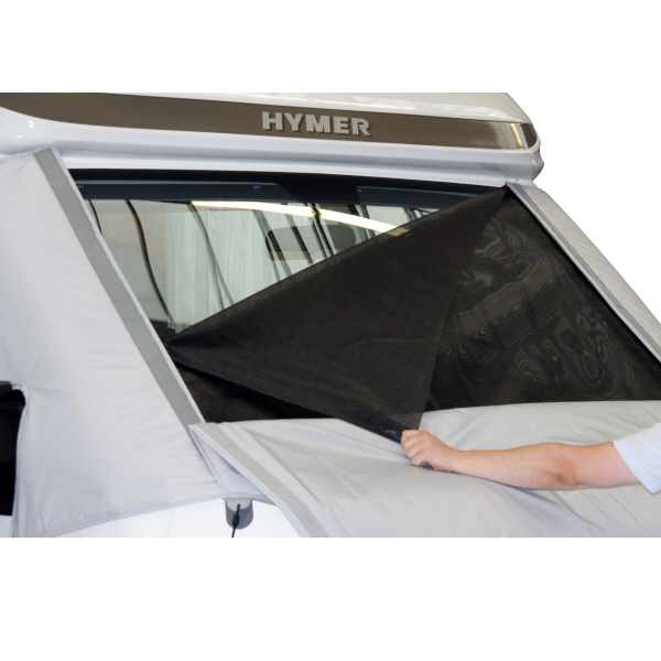 Das Oberteil isoliert den Bereich der Front- und Seitenscheiben, es wird einfach durch Einhängen der Taschen in die leicht geöffneten Türen angelegt und mittels beigefügten Gummispannern befestigt.