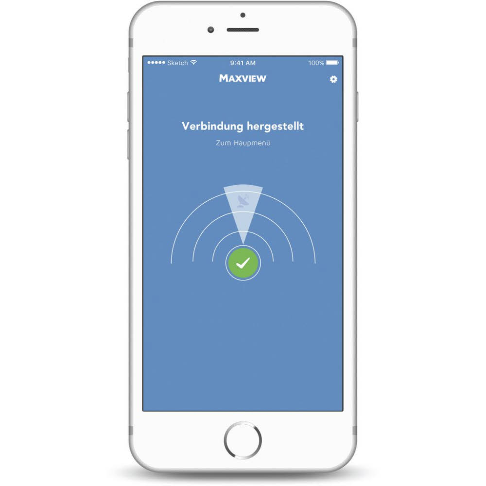 Die vollautomatische Maxview Target Connect hat die gleichen Eigenschaften wie die Maxview Target, verfügt aber darüber hinaus über eine intelligente Software, die die Bedienung noch einfacher und bequemer macht. Die kostenlose Maxview Connect-App ermöglicht die Bedienung der Sat-Antennen über das Smartphone. Sie läuft sowohl unter iOS als auch auf Android. Durch die App eröffnen sich verschiedene Bedienungsmöglichkeiten wie z. B. Software-Update bei Frequenzverschiebungen und unkomplizierte Änderung der gespeicherten Satelliten. Ebenfalls werden Fehlermeldungen direkt auf dem Smartphone sichtbar. Egal wohin man reist – mit der Sat-Anlage Maxview Connect ist man immer auf Empfang. Steuergerät inklusive Universal-Halterung zur senkrechten oder hängenden Montage.