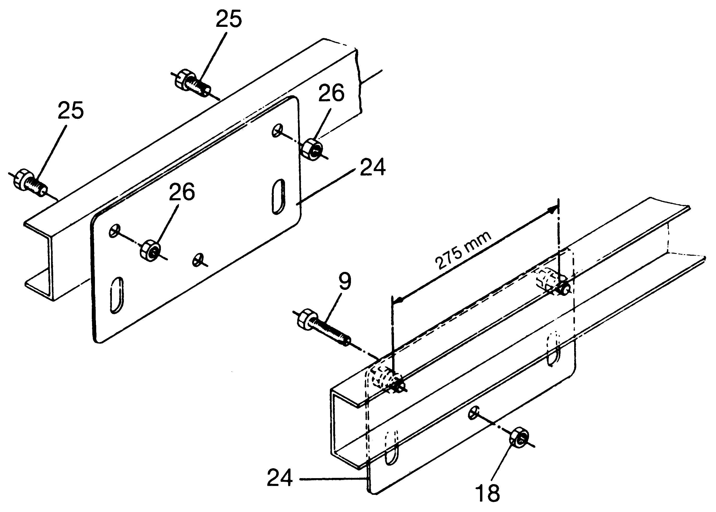 Mit diesem Nachrüstsatz können auch ältere Fahrwerke und Nicht-ALKO Fahrgestelle mit dem ALKO Reserveradhalter ausgerüstet werden. Die Adapterplatten werden mit dem Fahrgestellrahmen hinter der Achse einfach verschraubt. Hierzu muß der Rahmen entsprechend angebohrt werden.