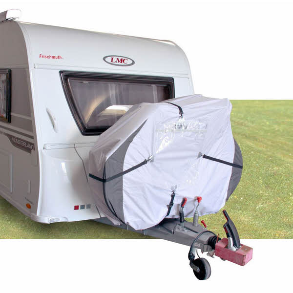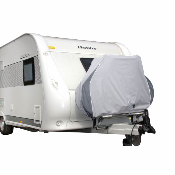Die Schutzhülle ist in erster Linie konzipiert für auf Deichseln montierte Fahrradträger. Aber durch die Kastenform sind sie universell einsetzbar, z.B. für Motorroller auf der Bühne. Sie wird von oben her über die Fahrräder gezogen. Entlang der Unterkante ist ein Gummizug eingearbeitet.
