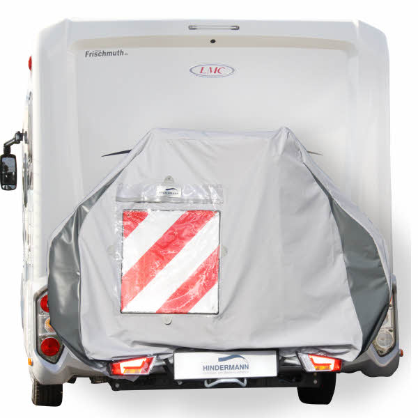 Für die Anwendung am Reisemobil ist eine Glasklartasche für die Warntafel eingearbeitet. Genäht mit Reflexionsstreifen