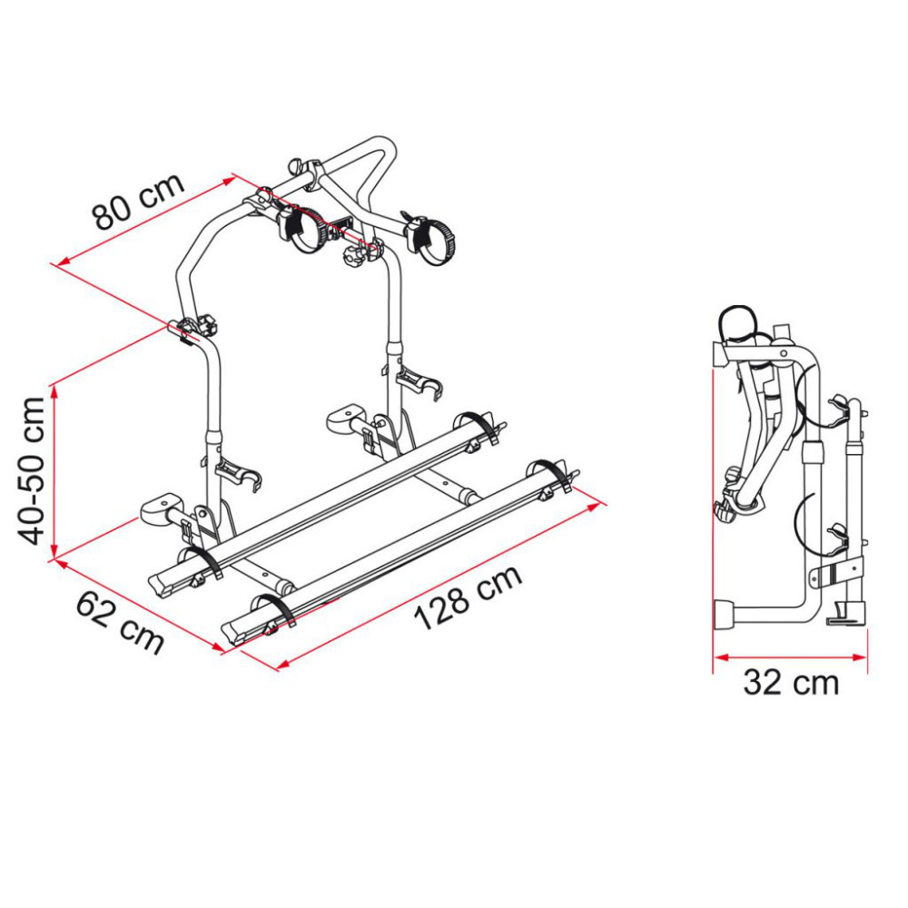 Fahrradträger Pro C in Spezialversion mit einem Achsenabstand von 80 cm, passend für Laika Wohnmobile. Optional erweiterbar für bis zu 4 Fahrräder.