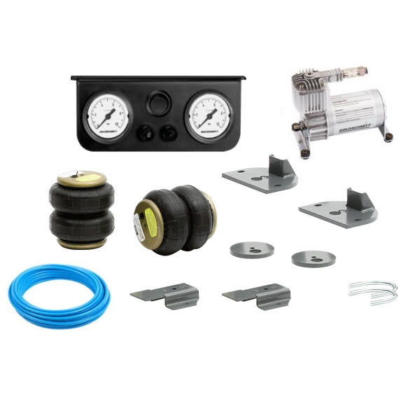 Doppelfaltenbalg-Anlage zur Montage an der Hinterachse inklusive 12-Volt-Kompressor; dieses Produkt aus dem Hause Goldschmitt setzt Maßstäbe in puncto Fahrkomfort und Betriebssicherheit.