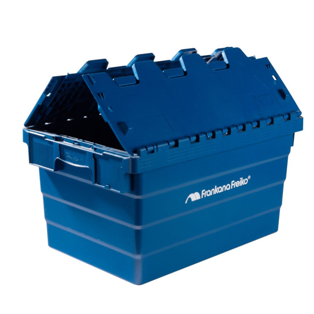 Durch den leicht konischen Körper punktet die FF-Transportbox zudem bei der platzsparenden Lagerung und dem Leertransport. Die Transportkisten mit offenem, seitlich geklapptem Deckel werden einfach ineinander geschachtelt.