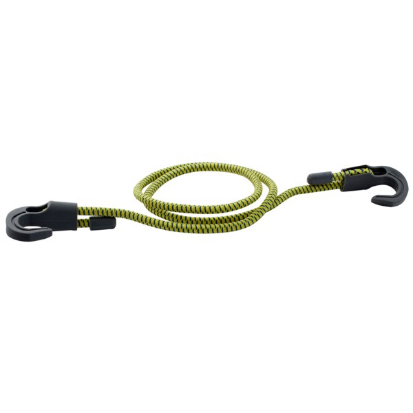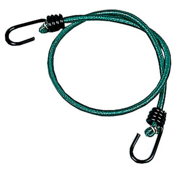 Gummiseil beidseitig mit Haken, zum universellen Abspannen und Befestigen. Material: innen Naturkautschuk, außen Polyethylen hochdicht (nicht faulend, wasserabweisend, gut beständig gegenüber UV-Strahlung und Verschleiß). Reißfestigkeit: 80 daN (Richtwert). Dehnfähigkeit: 100 %. Mit bruchsicherem, mit Kunststoff ummanteltem Stahlhaken.