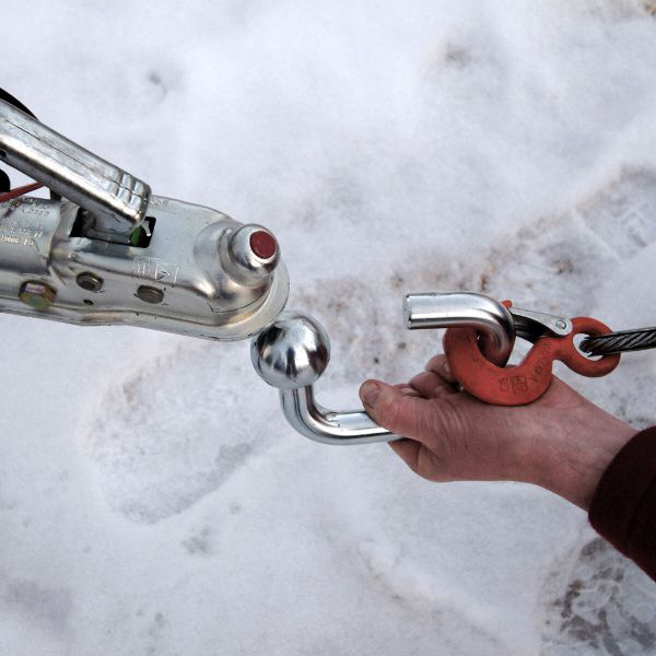 - Sicheres und schnelles Befestigen des Abschleppseils oder der Abschleppstange an der Deichsel des Anhängers. Die Rangierhilfe wird einfach in die Kupplung des Anhängers eingerastet.