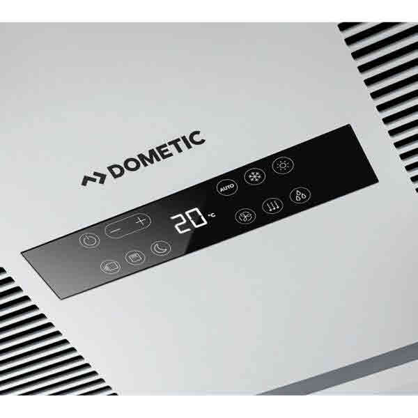 Der Luftverteiler mit LED-Beleuchtung hat ein elektronisches Touch-Bedien­panel für komfortable Einstellung von Temperatur und Luftstrom. Kompatibel mit der Dometic Smartphone App.
