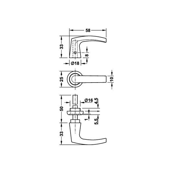 Türdrücker Garnitur aus Kunststoff, braun mit 7 mm 4-Kantstift.