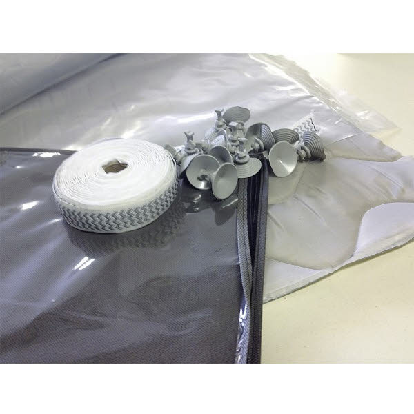 Dieser Thermovorhang ist passgenau für den Türausschnitt des Ducato Typ 250/290 (Modell ab 2007, Variante mit hohem Türausschnitt H2) gearbeitet. Die Fliegengittertür kann montiert bleiben, ebenfalls bei geschlossener Schiebetür. Der Thermovorhang verfügt über einen schulterbreiten Zugang. Die flexible Tür schmiegt sich im Randbereich an die B-Säule, oben und unten sorgen Laschen für einen dichten Anschluss.