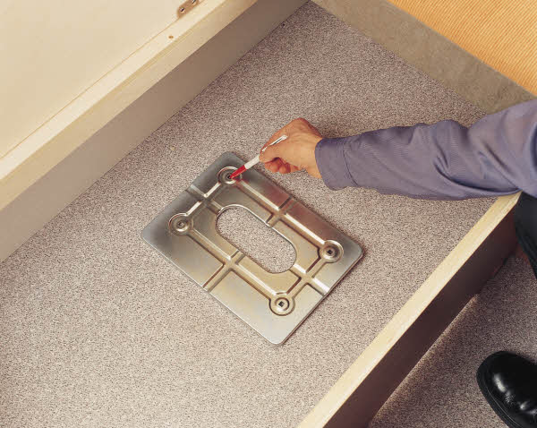 Der Einbau kann individuell erfolgen, z. B. Boden, Schrankwand, Staukasten. Der Einbau kann wahlweise stehend oder liegend (Tür nach vorn oder nach oben) erfolgen. Eine hinterlüftete Montageplatte verstärkt den Anbaubereich und ist zugleich Bohrschablone. Die Befestigungsmuttern sind innerhalb des Tresors und somit nicht zugänglich.