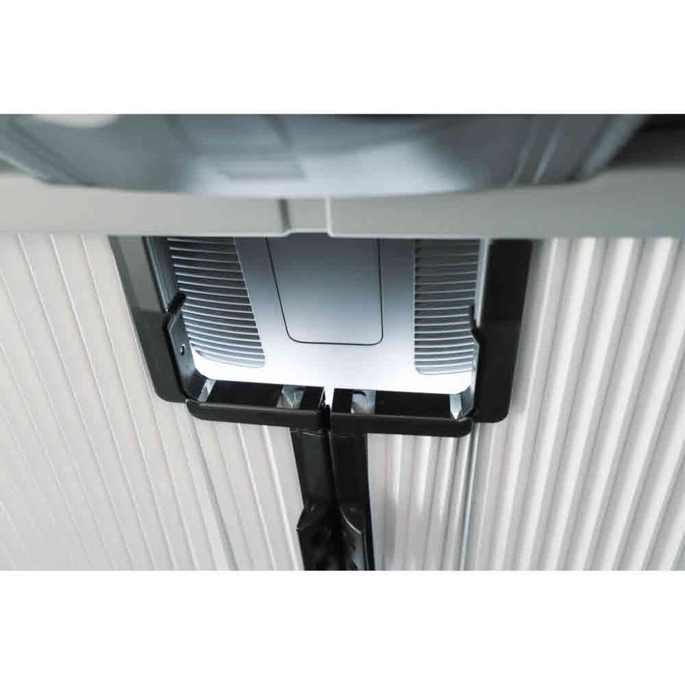 Im Lieferumfang enthalten ist eine Halteplatte für Vesa 75 und Vesa 100, die einfach auf die Halterung aufgesetzt und durch eine Flügelmutter arretiert werden. Dadurch sind die Geräte einfach zu entnehmen und bei Nichtgebrauch zu verstauen.