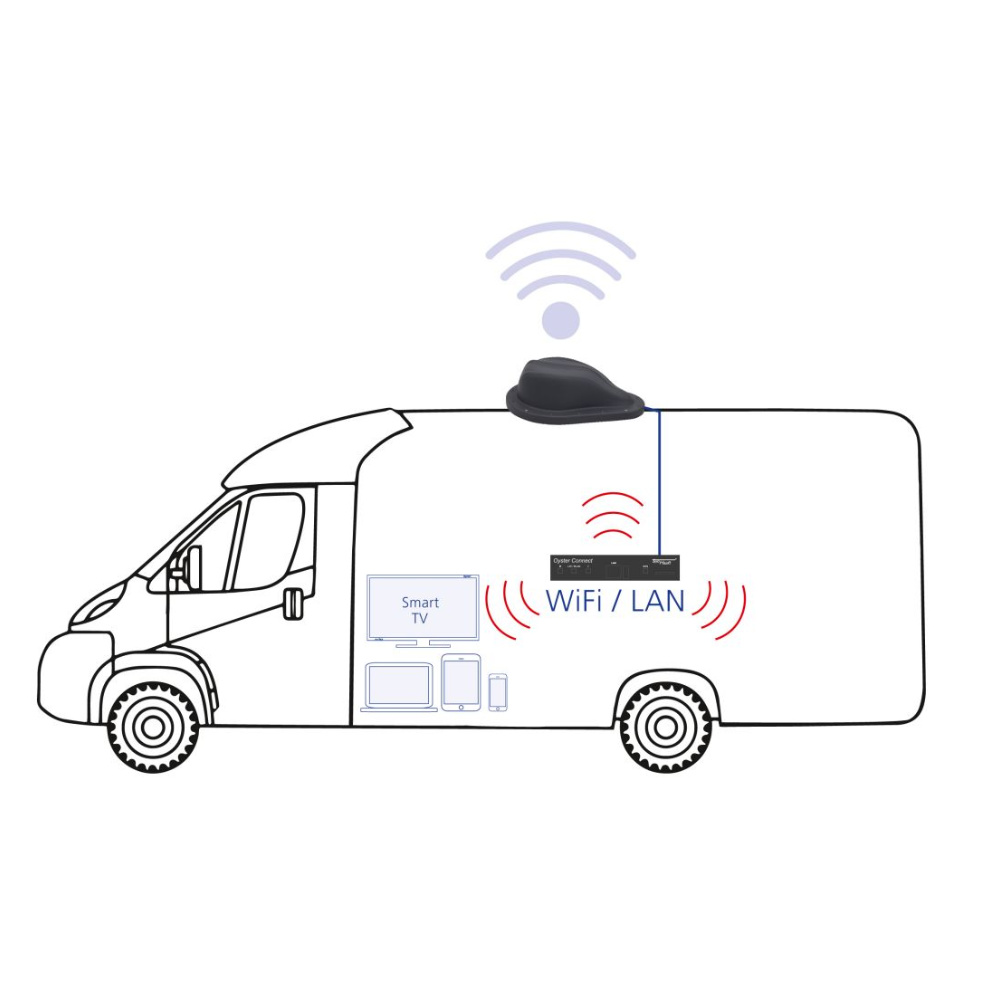 Oyster Connect das spezielle Antennensystem für gehobene Ansprüche: der mobile Hotspot sorgt für ein stabiles Signal – sogar während der Fahrt. Sie können im Wohnmobil, Campingbus oder Caravan ganz entspannt surfen – und zudem sämtliche Vorzüge eines mobilen Heimnetzwerkes nutzen. Die Verbindung bleibt standortunabhängig erhalten, ganz gleich, aus welchem Netz das externe Signal kommt – die registrierten Endgeräte verbinden sich ganz automatisch mit dem eigenen Hotspot.