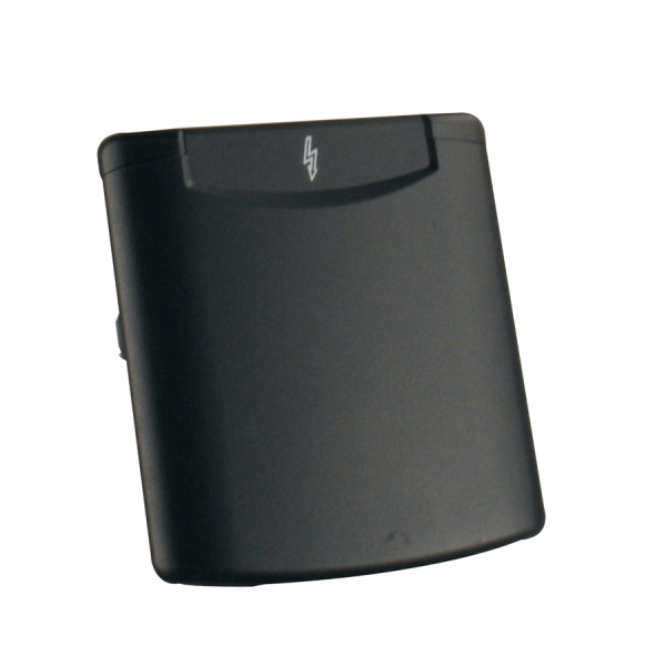 Große Ausführung mit Klappdeckel, Deckelrasterung und rückseitigem Abdeckgehäuse, spritzwassergeschützt.