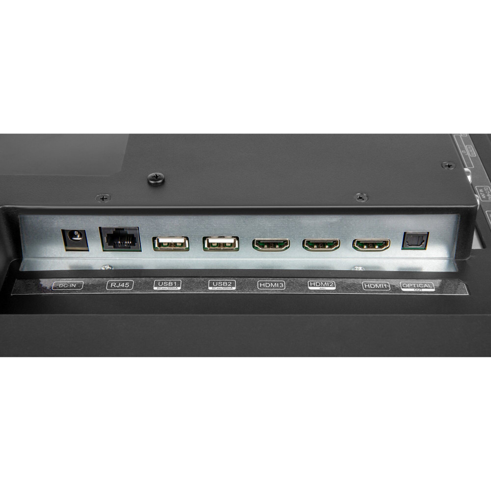 Ein-/Ausgänge: Antenne, 3 x HDMI, Audio Out (optisch), Kopfhörer-Ausgang (3,5 mm Klinke), RJ45 (LAN), 2 x USB, AV-Eingang (Audio/Video Cinch)