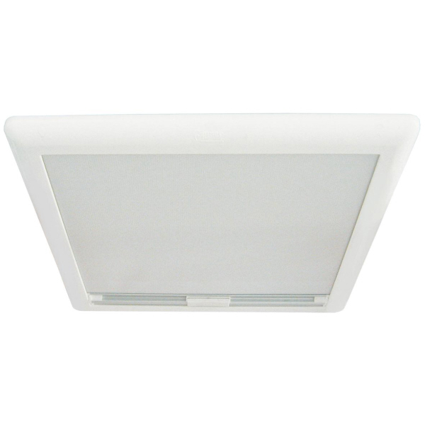 Kombiniertes Verdunkelungs- und Moskitorollo zu Fiamma Vent 50 x 50 und anderen Dachhauben mit den gleichen Maßen. Das Verdunkelungsrollo ist außen alubeschichtet und innen weiß.