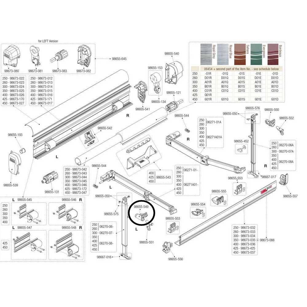 Fiamma Stützfußhalterung links für Markisen (Nr.98655-549)