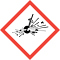 H203 Explosiv; Gefahr durch Feuer, Luftdruck oder Splitter, Spreng- und Wurfstücke.