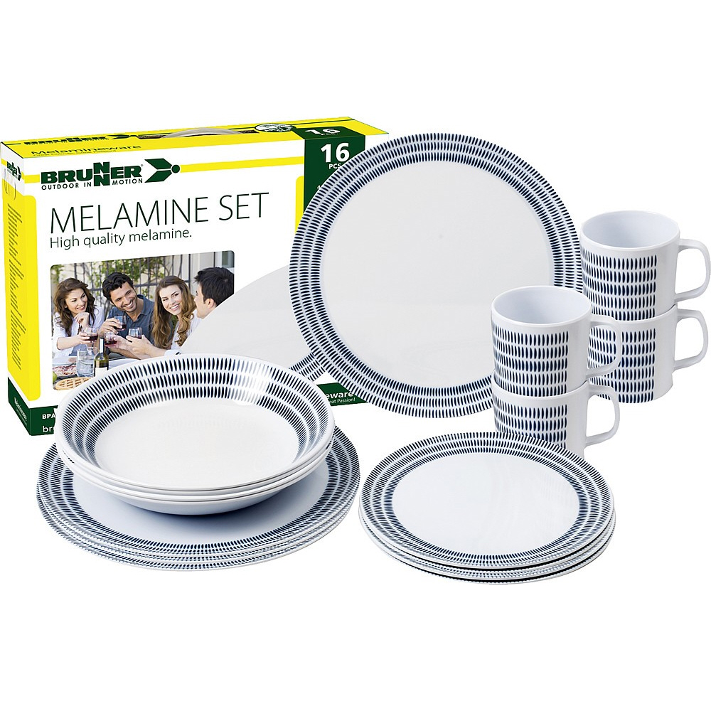 Geschirrset aus hochwertigem Melamin. Spülmaschinengeeignet, bruchunempfindlich, geruchs- und geschmacksneutral und lebensmittelecht.