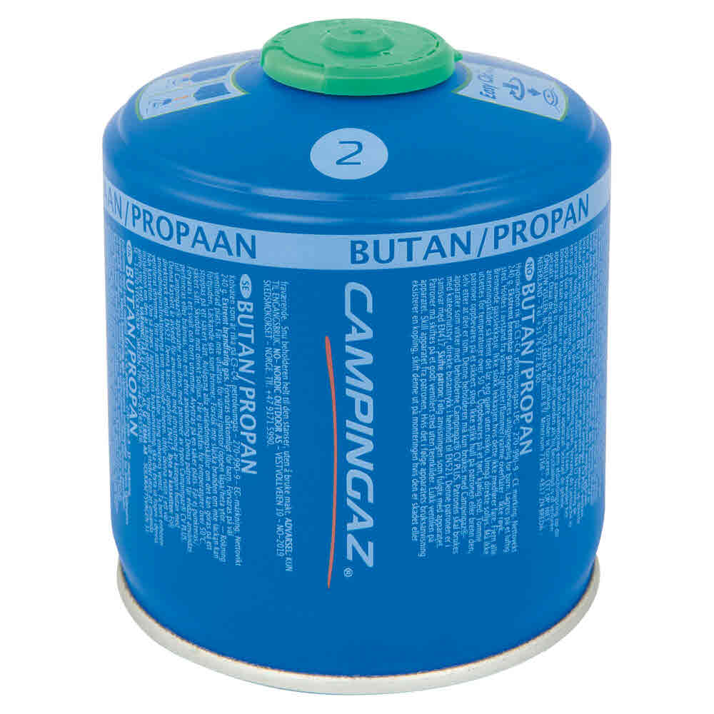 Die Stahl- oder Aluflaschen sind meist mit Propangas gefüllt, da Propan wegen höheren Drucks nach stärkerwandigen/schwereren Gasflaschen verlangt. Außerdem eignet sich Propan aufgrund des Siedepunkts optimal für kältere Umgebungen oder Urlaube in den Wintermonaten.