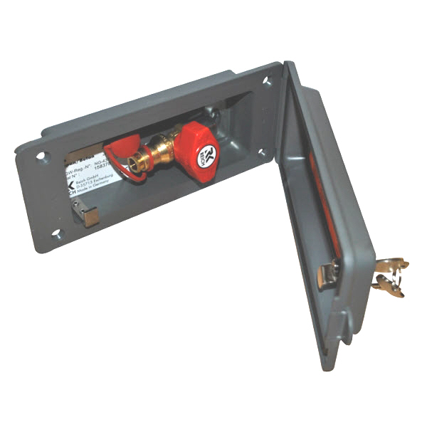 MPK Gasaussensteckdose mit Schnellschlussventil - weiß, mit Schloss